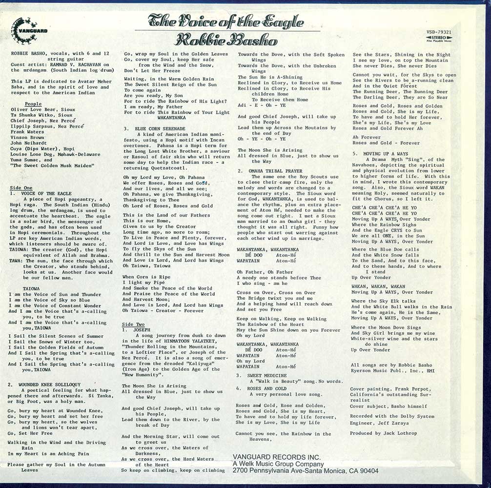 The first of the two albums Robbie released on Vanguard Records, was The Voice Of The Eagle. It featured eight tracks penned by Robbie. He played 6 and 12-string guitar and sang led vocals. Ramnad Raghavan was a guest artist. He played the mrdangam drums, which are an Indian log drum. Producing The Voice Of The Eagle, was Jack Mothrop. Robbie dedicated The Voice Of The Eagle to the Indian American and Avatar Meher Baba an Indian spiritual master, who many people believed, was God in human form. The Voice Of The Eagle was released in 1972.