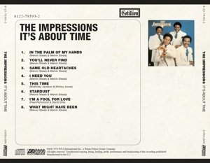 About Time featured eight tracks. Six of these tracks were penned by Melvin and Mervin Steals. They’d previously, as Maestro and Lyric, had written The Detroit Spinners’ Could It Be I’m Falling In Love, Major Harris’ Each Morning I Wake Up, The Trammps’ Trusting Heart and Honey Bee for Gloria Gaynor. Melvin and Mervin also wrote tracks for Ecstasy, Passion and Pain and Blue Magic. For The Impressions, Melvin and Mervin cowrote In The Palm Of My Hands, You’ll Never Find, Same Old Heartaches, I Need You, Stardust and What Might Have Been. The two other tracks included McKinley Jackson and Shirley Jones’ This Time and Paul Richmond and Daryl Ellis’ I’m A Fool For Love. These eight songs became About Time, which was recorded at various studios.