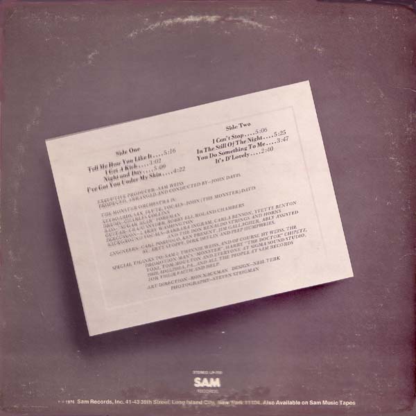 Having founded SAM Records in 1976, the nascent label released it’s first release, Doris Troy’s Woman and The Ghetto. Later in 1976, John Davis and The Monster Orchestra released their debut album Night and Day.