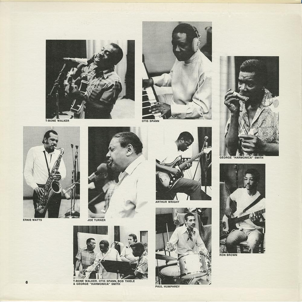 Joining T-Bone Walker, Joe Turner and Otis Spann were George “Harmonica” Smith, Ron Brown, Arthur Wright, Ernie Watts and Paul Humphrey. For blues aficionados, it’s a tantalising lineup that recorded four tracks.