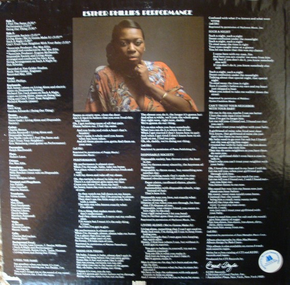 The seven songs on Performance were a compelling collection of tracks. Esther drops the tempo and delivers a slow, sultry, take on I Feel The Same. The title track Performance, is another slow, melancholy track. It’s also a reminder that Esther was a talented songwriter. Sadly, that’s often overlooked Esther then gets funky and sassy on Doing Our Thing. Eugene McDaniels’ Disposable Society is another song full of social comment. Esther nails a vocal that slow, feisty and funky. She seems to be relishing the opportunity to reflect on the way society is heading. Living Alone (We’re Gonna Make It) is a beautiful ballad, where Esther is at her melancholy, thoughtful best. Then Esther romps her way through Dr. John’s Such A Night. Living Alone (We’re Gonna Make It) heads in the direction of gospel. Isaac Hayes and David Porter’s Can’t Trust Your Neighbour With Your Baby oozes social comment, and is a reflection of American society circa 1974. During the seven tracks on Performance, Esther releases a series of vocal masterclasses. She’s helped by an all-star band of session musicians.