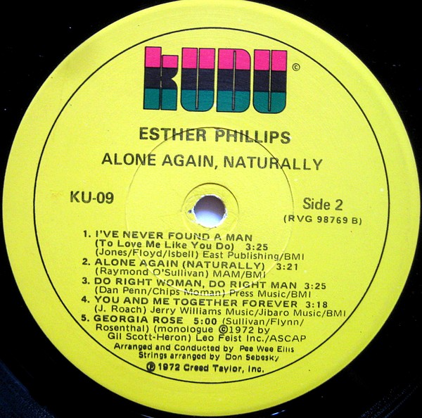 Later in 1972, buoyed by the success of From A Whisper To A Scream, Esther released Alone Again, (Naturally). This was her second album for Kudu/CTI. Again, Alone Again (Naturally) was produced by Creed Taylor. Again, everything was put in place for Esther. Songs that suited Esther, and a a band of top musicians accompanied Esther.