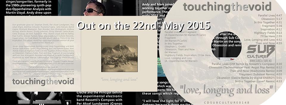 That’s despite being an unlikely musical partnership. Mark is a career musician. Music is all he’s ever known, whereas Andy is an author, analyst and lecturer in counter-terrorism. Although they’re an unlikely musical partnership, Love, Longing And Loss, Touching The Void’s long-awaited debut album has been well worth the wait. Love, Longing And Loss will be released on Subculture Records on 22nd May 2015. It’s an album I can’t recommend highly enough.