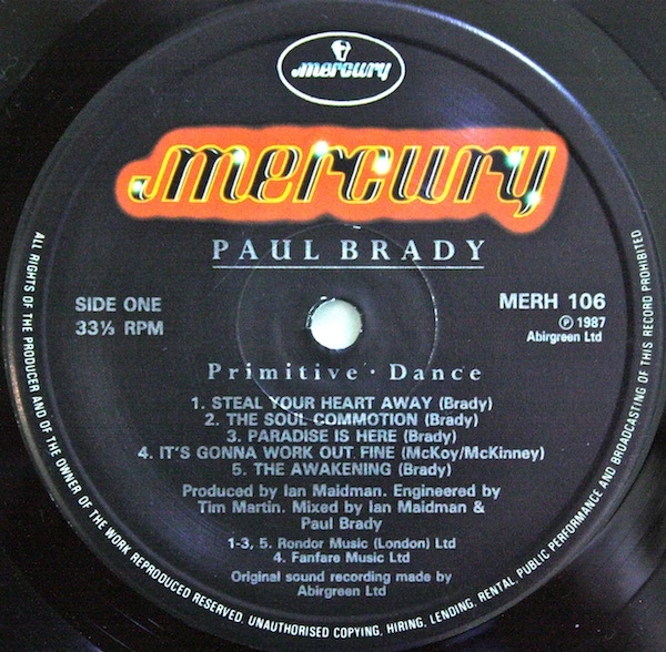 Nine years and four albums after changing direction musically, Paul Brady released Primitive Dance, the best and most cohesive album of his “second” solo career. It featured nine tracks which showcased Paul’s skills as a singer, songwriter and musician. From the soul searching ballads to the joyous, uptempo tracks, Paul Brady could do no wrong. He had come a long way since Hard Station.