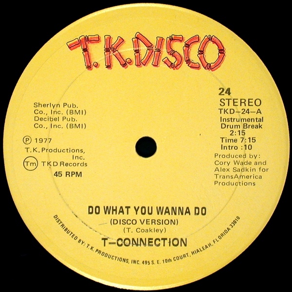 T-Connection were one of T.K. Records’ success stories. They released a quartet of albums between 1977 and 1979 on the Dash imprint. Do What Ya Wanna Do was the opening track from T-Connection’s 1977 album Magic. It was also released as a single on T.K. Disco, reaching number forty-six in the U.S. Billboard 100 and number fifteen in the U.S. R&B charts. Funky, soulful and dance-floor friendly, it was what DJs, dancers and music lovers wanted in 1977.
