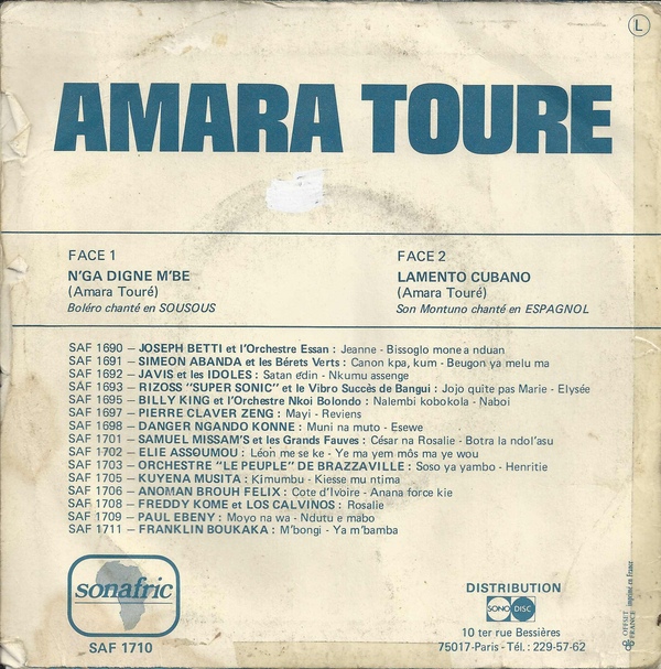 That proved not to be the case. Although Amara Touré continued to tour with L’Ensemble Black and White, they never entered a recording studio together.