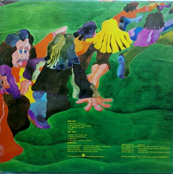 When recording of Audience began at Morgan Studios Howard Werth played acoustic and electric guitar. He also took charge of the vocals. The rhythm section bassist Trevor Williams and drummer Tony Connor who also played vibes. Keith Gemmell played tenor saxophone, clarinet and flute. Producing Audience’s eponymous debut album was Chris Brough. Audience was recorded quickly, and released later in 1969.