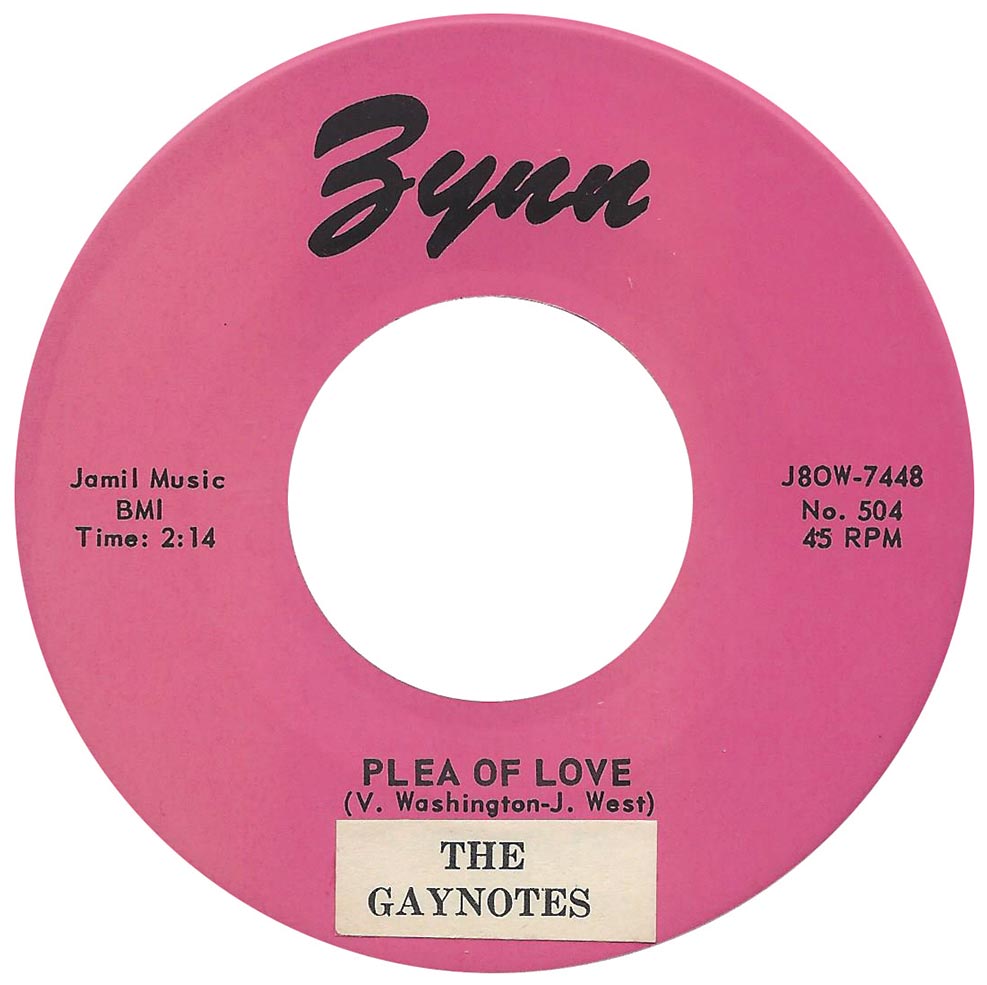 From the moment J.D. Miller clapped eyes on The Gaynotes, he thought they had a big future ahead of them. So J.D. cut cut four sides with The Gaynotes and sent a copy of the tape to Excelo’s Ernie Young in Nashville. He passed on the The Gaynotes. Unperturbed, J.D. Miller released Plea Of Love with Waiting In The Chapel on the flip side. When the singles arrived from the pressing plant, the label said Clem and The Dew Drops. Rather than repress the singles, a label was used to cover the error. The single was then released on Zynn in 1958, but wasn’t the success J.D. Miller had hoped for. Since then, the single has continued to cause confusion. Many of the labels have fallen off or been removed, leading record buyers to think that Plea Of Love is in fact by Clem and The Dew Drops. Now you know better.