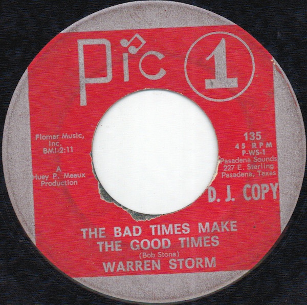 Warren Storm is without doubt, one of the biggest names on South Texas Rhythm ‘N’ Soul Revue 2-From The Vaults Of Crazy Cajun Records. He’s a legend of the Louisiana music scene, whose constantly reinvented himself. From swamp pop to country and R&B to soul, Warren Storm has tried it. In 1966, Warren Storm had decided to reinvent himself as a soul singer on The Bad Times Make The Good Times. This Robert Stone composition was released on the Pic 1 label, and features Warren Storm delivering a tender, heartfelt vocal on this paean.