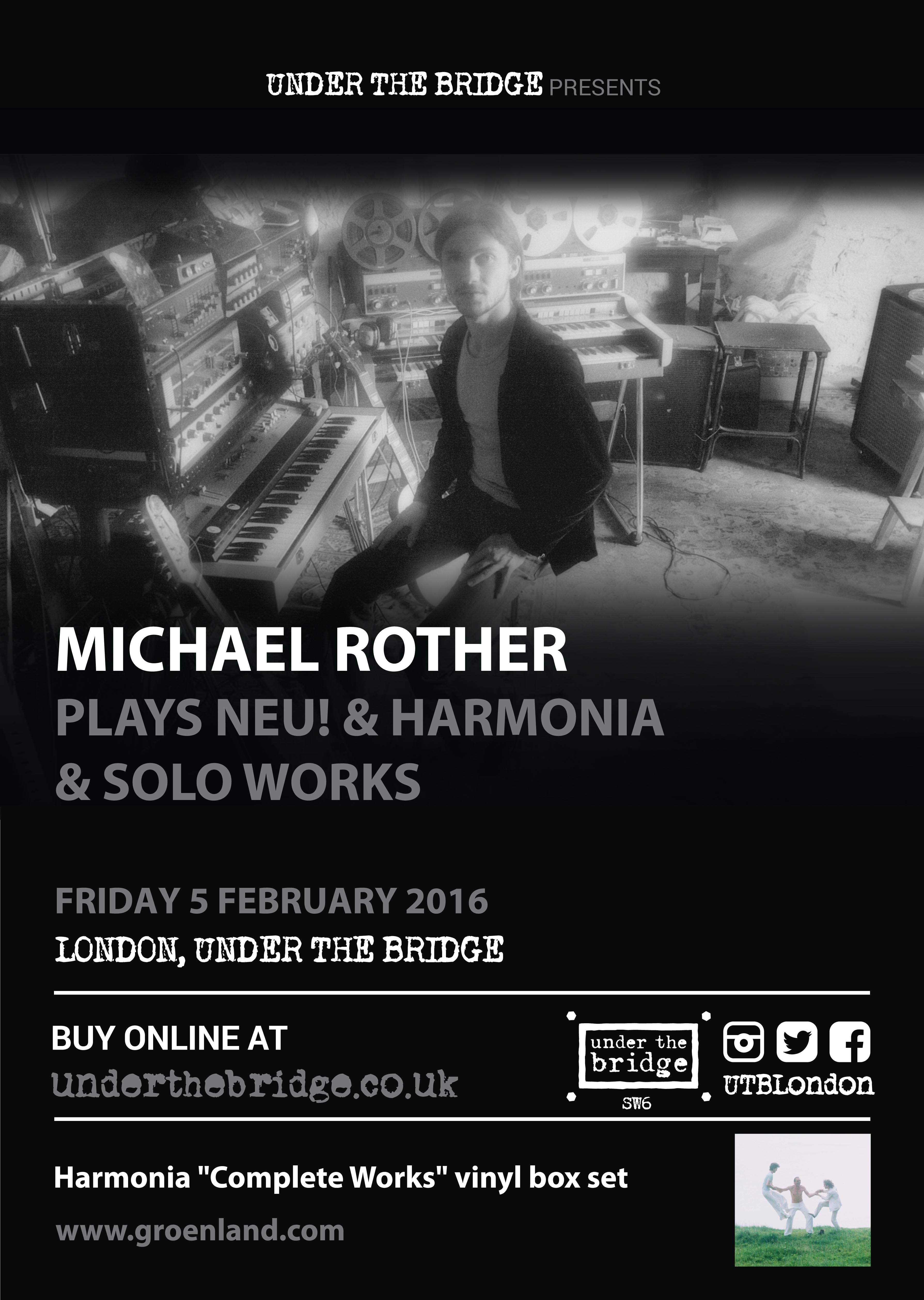 Early in 2016, Michael Rother heads out on tour, and each night, will play a selction of songs by Neu! and Harmonia. Michael Rother live is proving the hottest ticket in town, and on the 6th of February 2016, Michael Rother makes a welcome return to London, where he will play what’s one of the most eagerly awaited shows of recent years, at Under The Bridge.