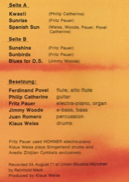 Having written some new songs, pianist Fritz Pauer decided to take them to Klaus Weiss. When Klaus saw the songs, he was impressed, so much so, that he suggested to Fritz that they record these songs with a new band.