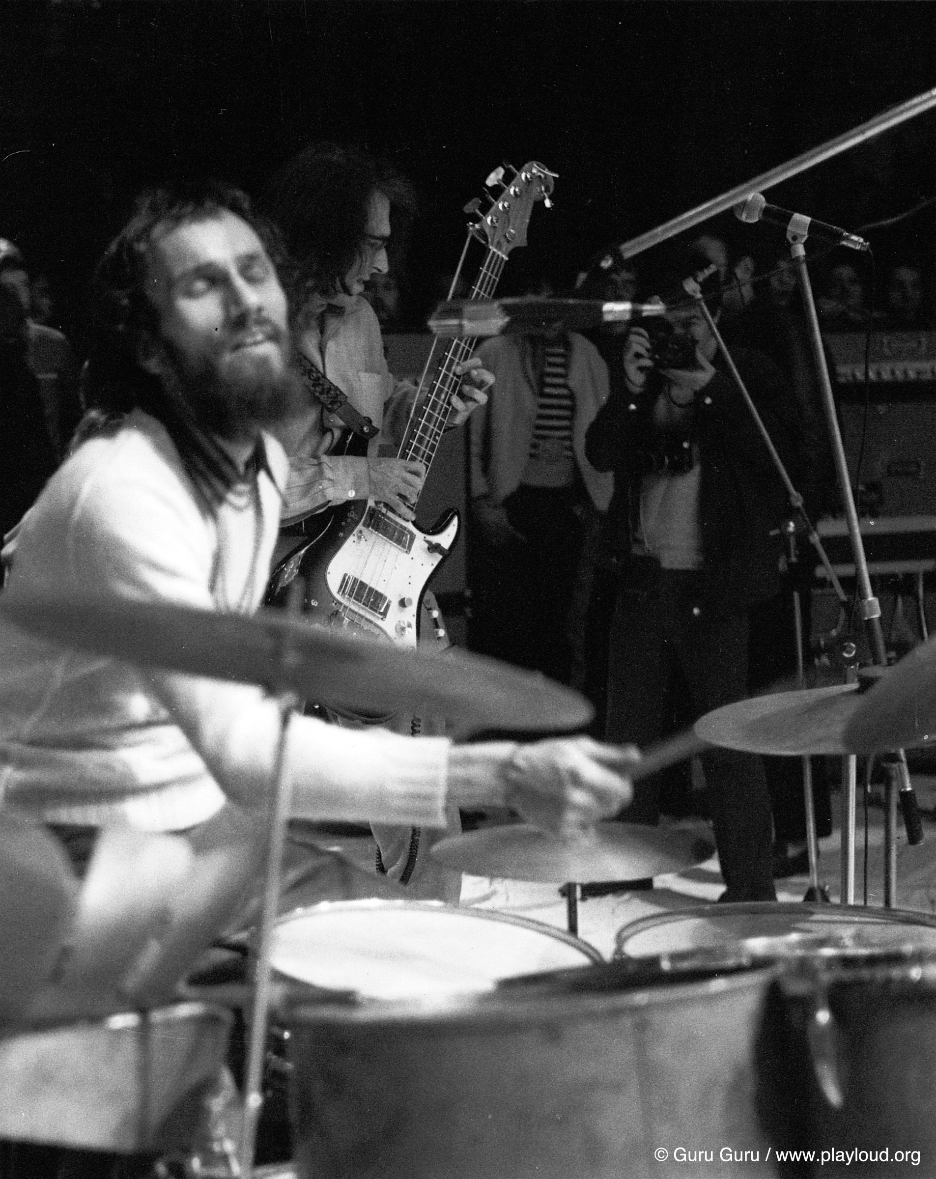 Unlike the American and British rock scenes, commune culture played an important part in the German music scene at that time. The three members of The Guru Guru Groove lived in a commune in the Odenwald region, where they experimented with various hallucinogenic drugs. Many of The Guru Guru Groove’s early concerts took place in communes. Soon, though, The Guru Guru Groove were a familiar face on they university circuit.