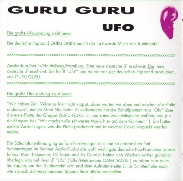 - Tagged: Ax Genrich, Eddy Naegeli, Guru Guru, Jim Kennedy, Julius Schittenhelm, Mani Neumeier, Ohr, The Guru Guru Groove, UFO, Uli Trepte