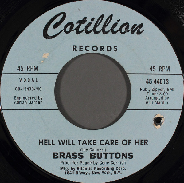 Brass Buttons open side three of Nuggets Hallucinations: Psychedelic Pop Nuggets From The WEA Vaults with Hell Will Take Care Of Her. This was the B-Side of their only single My Song. It was released on Cotillion in November 1968. Instantly, the listener is transported back  to 1968. As the song unfolds, here’s more than a nod to The Beatles on this glorious slice of psychedelic sunshine pop. By the end of track one can’t help but wonder why Brass Buttons didn’t enjoy a longer and more successful career?