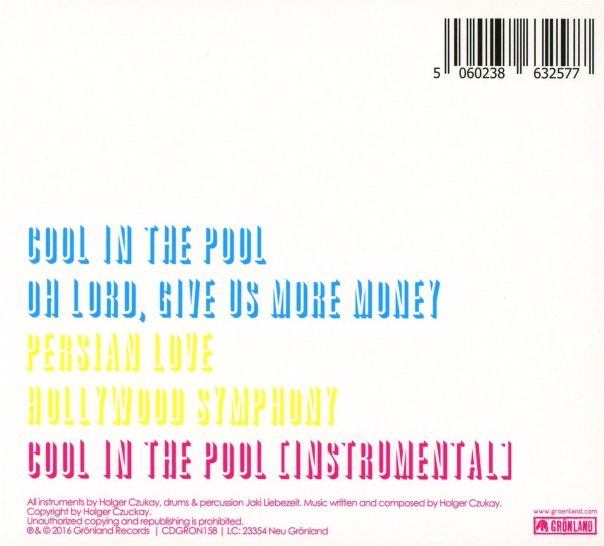 For his sophomore album Movie, Holger Czukay wrote four new songs, Cool in the Pool, Oh Lord, Give Us More Money, Persian Love and Hollywood Symphony. These four tracks were recorded with friends a foe alike.