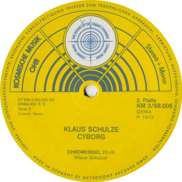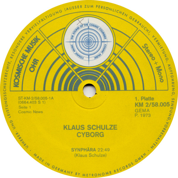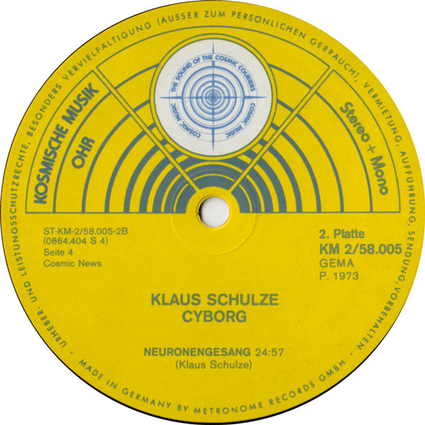 During the recording sessions, Klaus had recorded four lengthy tracks. They ranged from twenty-three to twenty-six minutes. Given the limitations of vinyl, there was no way that the music would fit onto one album. So a decision was made that Cyborg would be a double album. This would prove expensive for everyone involved.