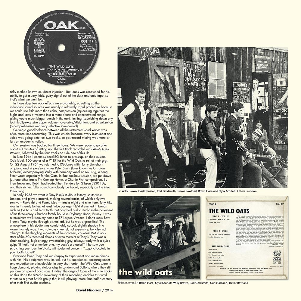 So much so, that in June 1964 David Nicolson returned to R.G. Jones’ studio with a request. He was looking to have an E.P. pressed to sell at The Wild Oaks concerts. David Nicolson knew that R.G. Jones’ studio had its own in-house label, Oak. A total of 100 copies of The Wild Oats’ E.P. were pressed that day.