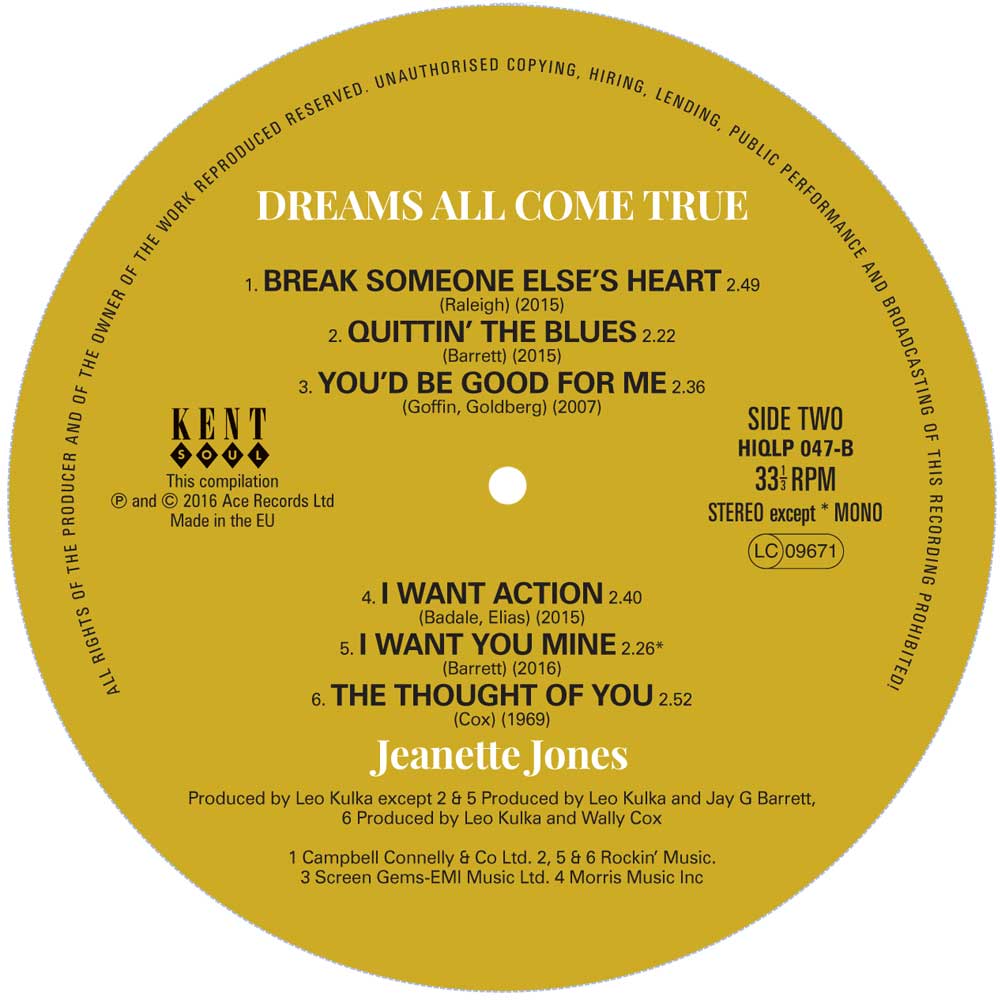 Jeanette Jones was a hugely talented singer, who had the ability to breath life, meaning and emotion into lyrics. She could combine power and passion, and seamlessly switch between ballads and uptempo tracks. Despite her undoubted talent, sadly, Jeanette Jones never made a breakthrough. It was a case of what might have been.