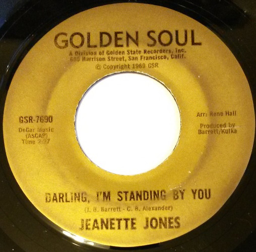 She had talent in abundance, and a voice that was a mixture of power, passion, emotion and sheer soulfulness. Sadly, Jeanette Jones’ recording career was all too brief, and amounts to just one single, Darling, I’m Standing By You. It was released on the Golden Soul label in 1969, and the two years later, was reissued by Kent. Nothing came of the single.