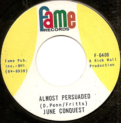 June Conquest’s recording career lasted just eight years. During that period, she released just six singles. This included one single on Fame Records, Almost Persuaded. It was a Rick Hall production, that was released in 1964. When Almost Persuaded wasn’t a commercial success June Conquest was dropped by Fame Records. This seemed somewhat hasty, as June Conquest was obviously a talented vocalist. She doesn’t so much deliver lyrics but live them. Her vocal is a mixture of melancholia, sadness and disappointment on Almost Persuaded, which is a real hidden gem. That’s almost an understatement. It’s much better than that, and is essential listening for anyone who likes their music soulful.