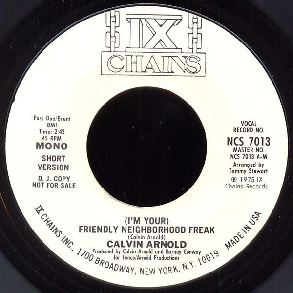 Before signing to Bob Shad’s IX Chains Records, Calvin Arnold was something of a musical nomad. He had wandered from label to label, searching for that ever elusive hit single. His luck changed when Satisfy My Love became his IX Chains Records’ debut single, and reached seventy-nine in the US R&B charts. Although it was only a minor hit single, it was Calvin Arnold’s breakthrough hit. For the followup, (I’m Your) Friendly Neighbourhood Freak was released. It was penned by Calvin Arnold and he co-produced the song with Barney Conway. When (I’m Your) Friendly Neighbourhood Freak was released in 1975, this smouldering fusion of soul and funk reached seventy-nine. NowCalvin Arnold had two hit singles to his name. Maybe his luck was changing? Alas, that was as good as it got for the journeyman soul man.