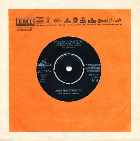 Just like Agnetha Fältskog, Anni-Frid Lyngstad was embarking upon a solo career in 1969. She had just released Sa Synd Du Maste Ga (It Hurts To Say Goodbye) as a single on Columbia. This was a cover of a song penned by Arnold Goland and Jack Gold, which was produced by her partner Benny Anderson. Together, the two future members of Abba are responsible for a breathy, beautiful and timeless slice of Euro beat.