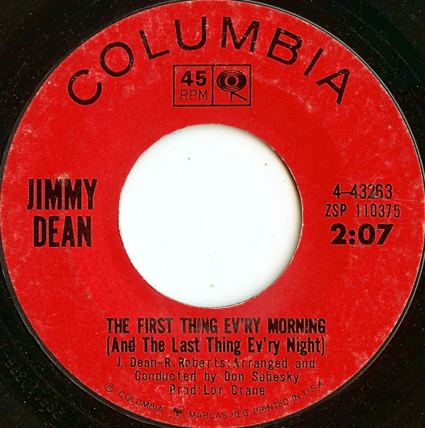 Jimmy Dean’s The First Thing Ev’ry Morning (And The Last Thing Ev’ry Night) closes Chartbusters USA-Special Country Edition. It was released on Columbia in 1965, and reached number one on the US Country charts and number ninety-one on the US Billboard 100. It’s another example of the countrypolitan sub-genre, which is country music with pop stylings. There’s even a nod Dean Martin stylistically, as the song takes on an easy listening singalong style. Sadly, Jimmy Dean only enjoyed two more hit singles, and never again enjoyed another US Country number one. A new breed of country singers were about to make their presence felt, as country music continued to evolve.