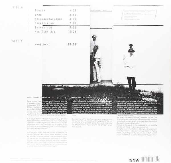 When Con-struct was released, it was billed as a collaboration between Conrad Schnitzler and Borngräber and Strüver. It was released on M=minimal label on the 1st of August 2011. Three days later, tragedy struck.