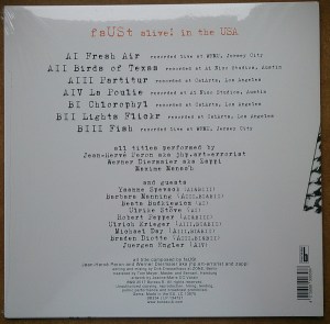 Since 2005, the two versions of Faust have coexisted, and continued to tour and release new albums. The most recent album baring the Faust name is Fresh Air, which was released by Hamburg based Bureau B. Fresh Air was recorded by Werner “Zappi” Diermaier and Jean-Hervé Péron version of Faust.