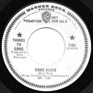 Los Angeles based Things To Come released a trio of singles between 1967 and 1968. Their sophomore single was the Russ Ward composition Come Alive, which was produced by Dave Hassinger. Come Alive was released on Warner Bros, in January 1968. It finds Things To Come marrying garage rock with psychedelic and Eastern influences. It’s a potent and heady brew, that shows Things To Come at their most inventive.
