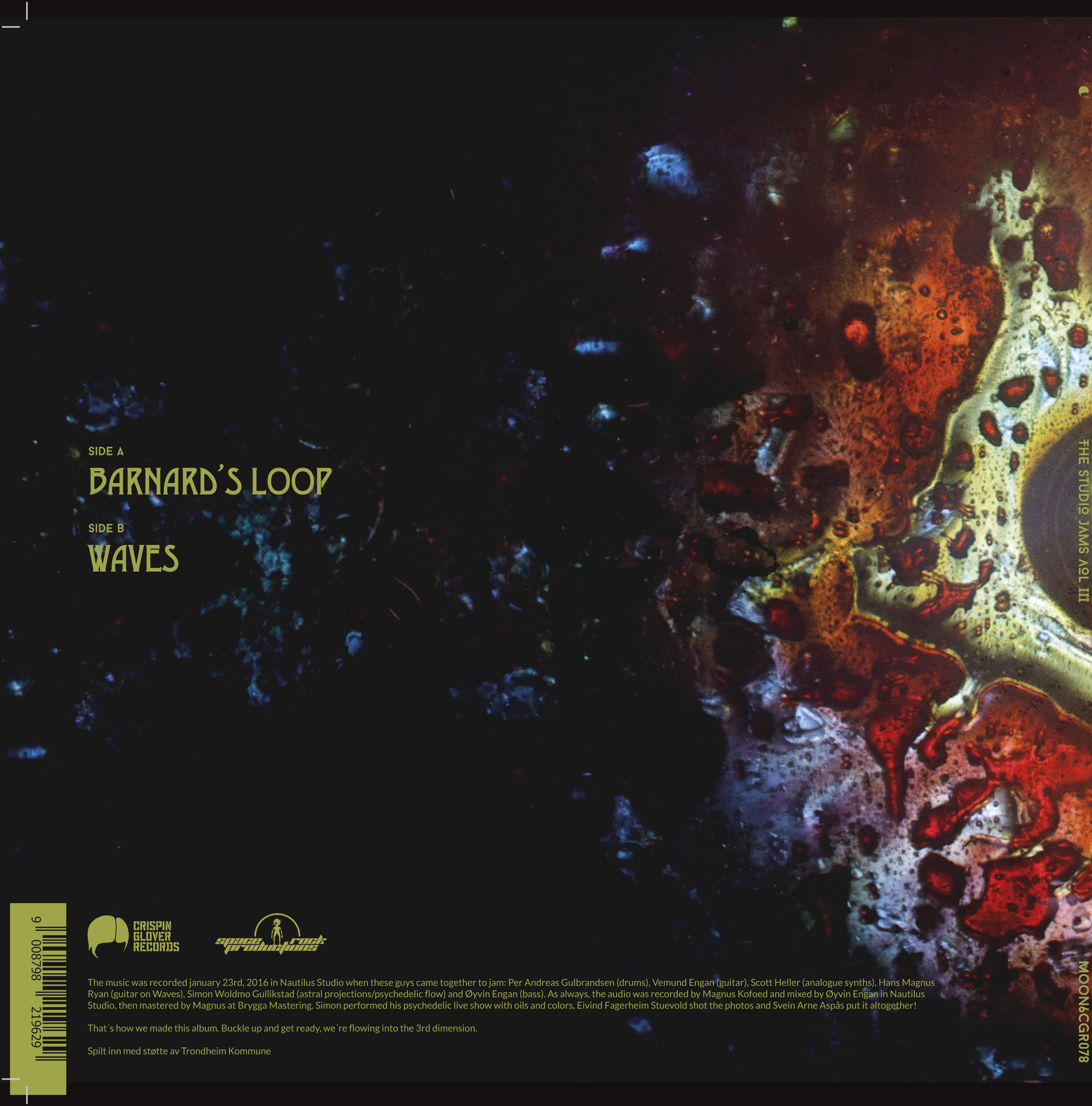 Earlier in 2017, Black Moon Circle returned to the studio complete The Studio Jams series. They planned to record two lengthy jams Barnard´s Loop and Waves. As usual, Øyvin Engan would play bass and guitar, while his brother Vemund added another layer of fuzzy guitars. Joining Øyvin Engan in the rhythm section was drummer Per Andreas Gulbrandsen who would provide the heartbeat. Completing Black Moon Circle’s lineup was the newest recruit, Scott Heller a.k.a. Dr. Space. The four musicians recorded Barnard´s Loop together, but when it came to record Waves, Black Moon Circle were joined by one of the legendary figures in Norwegian music, Hans Magnus “Snah” Ryan a.k.a. Snah, who is Motorpsycho’s guitarist. With Snah onboard, Black Moon Circle recorded Waves which features on side two of Flowing Into The 3rd Dimension.