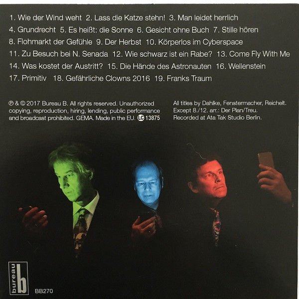 Before long, the members of Der Plan were collecting sketches, fragments of songs and ideas that they had gathered over the years. They took these to Pyrolator’s Ata Tak Studio Berlin, where Uncapitulable! was recorded.Moritz R® remembers the three weeks Der Plan spent recording what became Uncapitulable! “It worked incredibly well. This time the music was created on the basis of ideas and lyrics. Earlier, we often played improvised sessions and later added lyrics to it. One could say that in the meantime we have become something like songwriters.” That isn’t all that has changed. So has Der Plan’s music. Moritz R® explains: “Der Plan 2017 is no longer so angular and swings better.” It seems that Der Plan have been reborn, and no longer have the weight of the world on their shoulders. Instead, Der Plan are back doing what they best…making music.