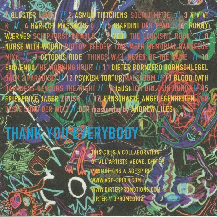 When festival goers arrived at the site of The Avant Garde Festival in Schiphorst, Germany, they discovered that a new CD Avant Garde Is Happening, had just been released by Dirter Promotions to celebrate and coincide the re-emergence of the festival that promised “three days of utopia.” Avant Garde Is Happening whose full title is Avant Garde Is Happening Because Collaborations Are Happening As Long As The Desire To Interact Fuels Our Hearts We Will Find Swarms That Build Moments And Space To Shelter The Worlds That We Are is a limited edition CD. Only 500 CDs were pressed, and those that didn’t sell at The Avant Garde Festival over the solstice weekend have just gone on sale. It’s a case of get them while you can, and discover some of the leading lights of the avant-garde scene on Avant Garde Is Happening.