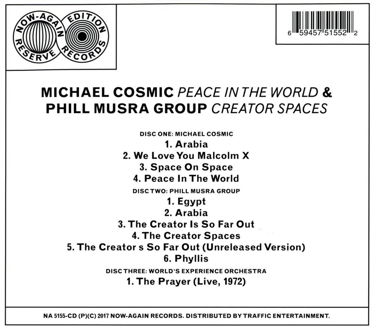 Within a couple of years, Michael Cosmic and Phill Musra’s band was a popular draw not just in Boston, but across the North East. They played almost non-stop travelling far and wide playing and spreading their musical message. By then, the group’s lineup was starting to take shape, and the band that featured on Michael Cosmic’s Peace In The World and Phill Musra Group’s Creator Spaces which are part of a three disc box set that was recently released by Now Again Records, was nearly complete.