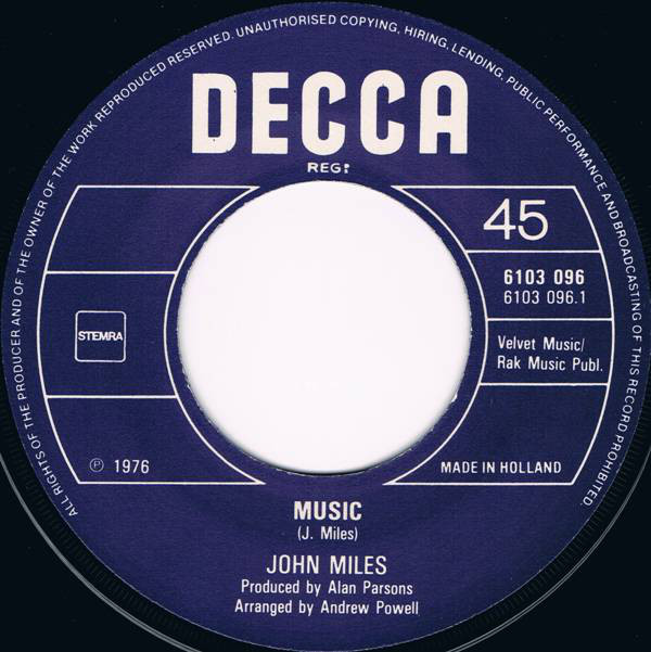 As 1975 gave way to 1976, Decca Records began to think about what should be the lead single from Rebel. The song they chose was Music, a near six minute epic. It was released in March 1976 and reached the upper reaches of the charts across Europe. Music reached number three in the UK; number four in Holland; number number one in Switzerland and eighty-eight in the US Billboard 100. Later, Music won John Miles an Ivor Novello award for Best Middle-Of-The-Road Song. Before that, Rebel was released.