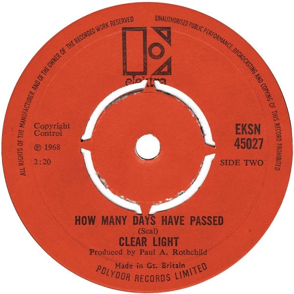 Looking back, the Clear Light story is one of what might have been. If Clear Light had continued to work with Paul Rothchild, what heights might they have reached? Would Clear Light have followed in the footsteps of their label mates and jamming partners The Doors? After all Paul Rothchild,had an enviable track record.
