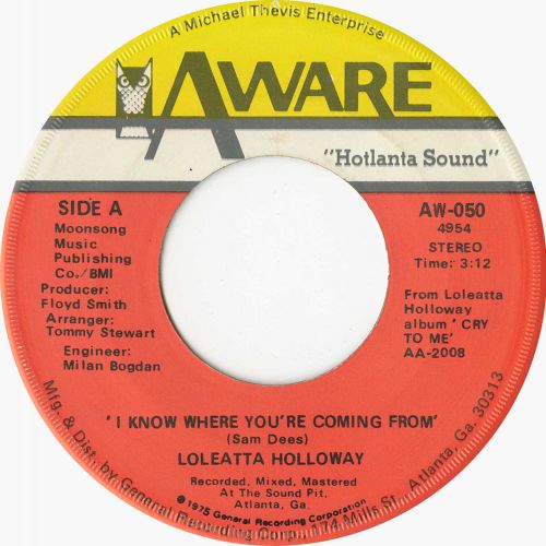 Her next single was Bring It On Up, originally the B-side to Sentimental Reasons. It was around this time that Michael Thevis became aware of Loleatta Holloway, and he signed for his new Atlanta based Aware label.