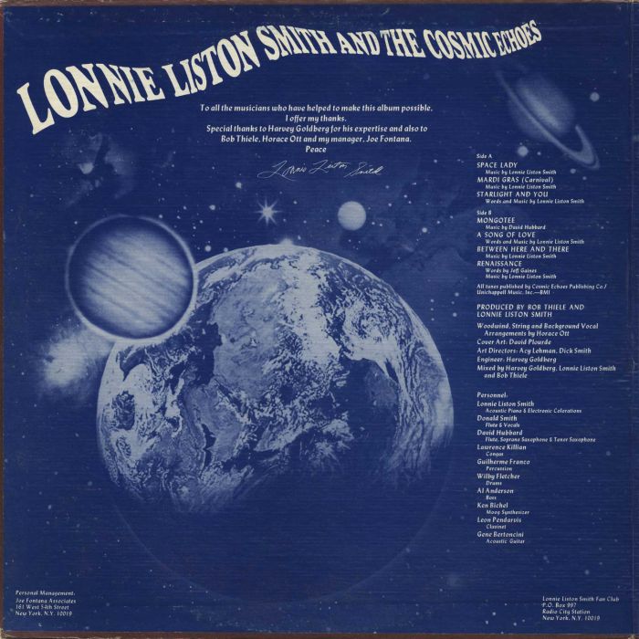 Innovative, influential and way ahead of the musical curve, describes the music of Lonnie Liston Smith, and specially the five albums he recorded with The Cosmic Echoes for Bob Thiele’s Flying Dutchman Productions between 1973 and 1976 This began with Astral Travelling in 1973 with Cosmic Funk followed in 1974. This was just the start.