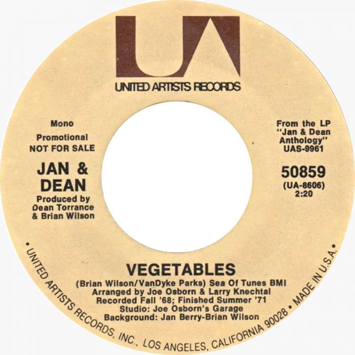Jan and Dean’s recording career began in 1959 and they were one of pioneers of the California Sound and vocal surf. Their most successful single was Surf City which reached number one in the US in 1963. They covered Vegetables which was released as a single in 1967 and then featured on the Jan and Dean Anthology Album in 1971. The cover features their trademark mixture of rock and pop as the duo rode the crest of a musical wave.