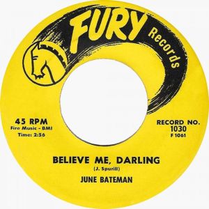 Jimmy Spruill wrote Believe Me, Darling which was recorded by his wife June Bateman for Fury in 1960. This soul-blues ballad features a soul-baring vocal full of emotion.